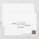 Apresentando o Elegante Script QR Code Save The Date Announement Card, projetado exclusivamente para casais engajados como você. Este belo cartão preto e branco combina simplicidade com elegância moderna, criando uma maneira incrível de anunciar sua data de casamento para sua família e amigos. Com a conveniência adicional de um código QR, seus entes queridos podem facilmente salvar a data e garantir que não perderão seu dia especial. Faça uma impressão duradoura com este na moda e cartão sofisticado que captura a essência da sua história de amor.