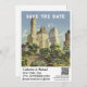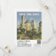 Este Convite para Salvar a Data com Código QR e poster de viagens vintage de Nova Iorque é a forma perfeita de anunciar sua próxima celebração em estilo. Este convite exclusivo combina a elegância clássica dos posters viagens vintage com a conveniência da tecnologia moderna. A frente do convite apresenta uma poster de viagens vintage impressionante, completa com seus marcos e atrações icônicos. A frente do convite inclui um código QR que os convidados podem digitalizar com seus smartphones para acessar instantaneamente todos os detalhes do seu casamento no site do seu casamento.