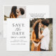 Paisagem Moderna e Elegante Horizontal Quatro (4) Código QR de Foto Salve o Magnete de Casamento de Data com tipografia de script com letra de mão. O ímã para salvar o convite de data inclui tipografia de script e chic e design simples para a qual você pode adicionar sua fotografia personalizada de noivado.