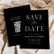 Anuncie seus futuros nupciais em estilo com nosso elegante e moderno código QR salve o cartão de data. A data não-fotográfica salva os recursos "Salvar a Data" em fontes de script e serif brancas com um fundo preto com speck brancos sutis. Personalize a frente do cartão de data, adicionando seus nomes, data do casamento, local do casamento e outros detalhes do casamento. O mínimo de salvamento do cartão de data reverte para incluir seu código QR personalizado com o site de casamento e o texto personalizado. Salve perfeitamente a data para casamentos formais e casuais modernos!