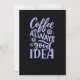 Need a coffee to de-stress your life on a daily basis? This funny coffee design with the saying "Coffee Is Always A Good Idea" will be a great companion for all coffee lovers, coffee addicts, and caffeine addicts out there. Mix your coffee bean and turn them into your favorite espresso or cappuccino while wearing this cute coffee design.