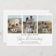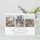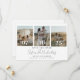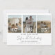 A design apresenta uma colagem de casais com um romeno moderno de escrita caligráfica e iniciais monográficas na parte de trás da carta. Personalize facilmente seus dados importantes para torná-los seus. Paira bem com qualquer tema moderno de casamento.