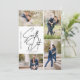Tire as suas 5 melhores imagens da sessão de fotos do seu noivado com 4 para a frente e uma para o verso. Ele apresenta um design de letreiro manual que diz Salvar a Data.