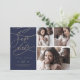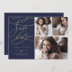 Esta colagem de fotos com marinho romântico 3, exceto o cartão de data é perfeito para um casamento simples. O clássico moderno design apresenta espirais de rico e turbilhões brancos com belíssima e elegante tipografia de folha de ouro de champanhe com letra falsa.