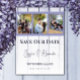 Anuncie a data do seu casamento para amigos e familiares com este simples e elegante Colagem de Fotos de Madeira Lavanda para Salvar a Data. O design do anúncio apresenta um fundo de madeira e espaços para três fotos do casal feliz, completo com um design de texto moderno.