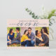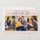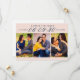 Estes casamento moderno e na moda salvam os cartões de anúncio de data incluem três fotos de noivado de 2 x 3" com a data apresentada no escrevendo elegante de roteiro. Personalize o texto da modelo da placa na frente e na parte traseira da placa para o seu grande dia. O fundo cor-de-rosa pincelado e a cor do texto azul-marinho podem ser personalizados para coordenar com o seu esquema de cor do casamento.