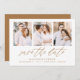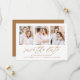 Anuncie seus próximos nupciais em estilo com nossa foto do Elegant Script para salvar o cartão de data. Os cartões salve a data elegantes exibem 3 de suas fotos de noivado favoritas com "salve a data" em um roteiro de caligrafia dourado e moderno sobre fundo branco. Personalize o cartão adicionando seus nomes, data do casamento e local do casamento. O minimalista salve a placa de data reverte para um fundo ouro sólido ou uma cor de sua escolha.
