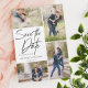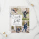 Tire as suas 5 melhores imagens da sessão de fotos do seu noivado com 4 para a frente e uma para o verso. Ele apresenta um design de letreiro manual que diz Salvar a Data.