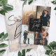 Tire as suas 5 melhores imagens da sessão de fotos do seu noivado com 4 para a frente e uma para o verso. Ele apresenta um design de letreiro manual que diz Salvar a Data.