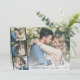 Casamento elegante salve a carta de data plana com sua foto sobreposta com uma faixa de três fotos quadradas menores e "Salve a Data" em um roteiro moderno. No verso, personalize os detalhes da data para salvar.