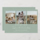 A design apresenta uma colagem de casais com um romeno moderno de escrita caligráfica e iniciais monográficas na parte de trás da carta. Personalize facilmente seus dados importantes para torná-los seus. Paira bem com qualquer tema moderno de casamento.