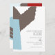 Bloqueio de cores em abstrato num alegre paleta de cor de inverno de blues e vermelho de tijolo fornece um fundo impressionante para as peças desta suite de casamento contemporânea. O cartão 'Salvar a Data' do casamento mostrado aqui é perfeito para lembrar um convidado de um próximo casamento no inverno. Adicione facilmente todos os detalhes do evento usando o modelo fornecido. Procure ID740 para ver outras opções de cores e produtos adicionais com este design.
