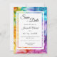 Apresentando o cartão salva-vidas da "Eteal Bloom Collection", oferecendo uma elegante prévia da arte vibrante que cercará sua próxima celebração. A frente deste cartão mostra trabalho de arte de tinta embebida em álcool em tons de azul, púrpura, vermelhos, laranjas e verdes, com lírios etéreos duplos expostos a moldar o design. A legenda gentil "Salvar a Data" é seguida pelos nomes dos casais, data do casamento e local, todos apresentados elegantemente para definir o tom perfeito para seu dia especial. Na parte traseira da placa save-the-date, um plano de fundo branco nítido fornece uma configuração limpa e sofisticada para personalização. A foto do casal se orgulha do lugar no topo, acrescentando um toque pessoal e capturando seu amor em meio ao trabalho de arte encantador. Abaixo, há amplo espaço para texto personalizável, sejam eles os nomes dos casais, uma mensagem sincera ou detalhes adicionais, garantindo que cada cartão seja exclusivamente adaptado à sua visão. Experimente a elegância da "Coleção Eetérea de Bloom" guardada no cartão, onde uma artista vibrante encontra a personalização, colocando a palco para a sua próxima celebração de casamento de uma forma memorável e na moda.