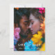 Apresentando o cartão salva-vidas "Eteal Bloom", onde toques pessoais espantosos encontram elegância artística. A frente da placa apresenta uma foto de página de cheio do casal, capturando um momento apreciado em detalhes vibrantes. Na parte inferior, a legenda "Salvar a Data" é exibida elegantemente, seguida pelos nomes dos casais e pela data da cerimônia, garantindo que todas as informações essenciais sejam claras e belamente integradas ao design. No verso, aparece uma segunda foto do casal, colocada contra um pano de fundo do encantador trabalho de arte do "Sangue Eéreo", que gira graciosamente em ricos tons de blues, púrpura, vermelhos, laranjas e verdes. Abaixo da foto, há amplo espaço para texto personalizado, permitindo detalhes adicionais ou uma mensagem sincera. O trabalho de arte melhora sutilmente o fundo, criando um quadro coeso e na moda que complementa as imagens do casal. Experimente o charme do cartão de salvamento "Eteal Bloom", onde fotos pessoais e artista vibrante se reúnem para dar um tom memorável para sua celebração de casamento.