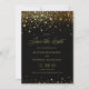Elegante, caprichoso e sofisticado anúncio de save the date com pontos de confete em folha de ouro falso com padrão de listras finas. Personalizável este save the date preto e dourado com seus próprios detalhes. Este é folha de ouro falso - NÃO haverá folha de ouro real. Os textos também são totalmente personalizáveis para qualquer evento.
