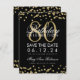 Design de "80 Festa de aniversário" elegante com Dourado Faux Glitter Confetti Black e nome personalizado e texto de detalhes. Fácil de usar e fácil de personalizar. Peça a sua hoje!