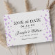 Reserve A Data Confetti Roxo de Casamento de Script Elegante