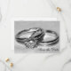 Anuncie seus próximos núpcias com o elegante Anúncio de Conjunto de Aliança de Diamante Save the Date. Este cartão de anúncio de casamento personalizado apresenta uma fotografia aproximada digitalmente aprimorada de um anel de noivado de diamante e conjunto de aliança de casamento com fundo cinza.