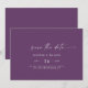 Esta moderna coordenada aquarela roxa horizontal, salvo o cartão de data é perfeito para um casamento contemporâneo na moda. O simples design roxo e branco de ameixa apresenta uma tipografia exclusiva de caracteres industriais, com o estilo moderno de boho. Personalizável em qualquer cor. Mantenha o design mínimo e elegante, como está, ou personalize-o adicionando seus próprios gráficos e trabalhos de arte.