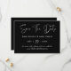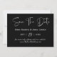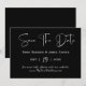 Compartilhe seu dia especial com este moderno cartão de aviso de data featuring coordenadas de aquarela preta em um layout horizontal elegante. Perfeito para casamentos minimalistas, formais ou de destino. Personalize com seus nomes, data e local.