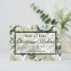 Esta floral romântica verde e branca Guardar o Cartão de Data é perfeita para qualquer casamento de jardim, botânico, floral, romântico, ao ar livre, rústico, vintage, boho ou formal. Perfeito para eventos de primavera, verão, inverno ou outono. Para começar a alterar nomes e detalhes do evento, clique em "Personalizar este modelo" e edite o texto nas caixas modelo. Para acessar as ferramentas de edição mais avançadas, role para baixo até "Clique para personalizar mais". Assim que estiver na ferramenta design do Zazzle, você poderá editar fontes, posicionamento, cor, dimensionamento e muito mais! Parte de um pacote coordenado. https://www.zazzle.com/collections/elegant_white_green_watercolor_floral_hydrangea-119519632957297407
