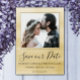 Foto: Watercolor Salve o Anúncio de data com um simples design de recorte de fotos quadrado contra um fundo de aquarela. Adicione uma foto e seus detalhes de casamento para personalizar esta design moderna e simples.