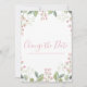 Avise seus convidados sobre sua data de casamento remarcada com nosso cartão elegante "Mudar a Data". Apresentando uma bela borda de flores rosa e verde, este cartão é seguramente capaz de chamar a atenção com as suas matizes moles e românticas. A elegante escrita rosa adiciona um toque de sofisticação, fazer a forma perfeita de informar os seus convidados sobre a mudança de planos. Com amplo espaço para seus nomes e detalhes atualizados em texto ousado e fácil de ler, este cartão é bonito e prático.