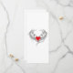 Coração vermelho pintado artificialmente com cinza de asas de anjo, decorado com contorno liso preto.