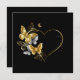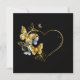 Dourada estrutura em forma de coração, decorada com ouro, joias e borboletas brancas sobre fundo preto.