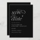 Cartão de Salve a Data (Preto com Texto Branco): Este cartão de salve a data de casamento moderno e elegante apresenta um fundo preto elegante com texto branco simples e um coração charmoso desenhado à mão. Seu design minimalista exala sofisticação, tornando-o a maneira perfeita de anunciar seu dia especial com estilo e graça. Ideal para casais que buscam um toque refinado e atemporal para a papelaria de seu casamento.