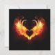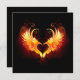 Coração de anjo com asas flamejantes em fundo preto.