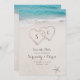Apresenta dois corações na areia e as iniciais da noiva e do noivo com água turquesa e fundo branco de praia, cartões salve a data de excelente para o casamento na praia de verão ou casamento de destino tropical.