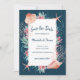 Náutico, "Embaixo do Mar", tema casamento Salve o cartão de data apresenta um recife de coral aquoso e conchas (estrelas, conchas e escamas) em tons de azul-aqua, menta, coral e rosa em fundo azul-marinho profundo. Coordena-se com a minha coleção de "recifes Tropicais" e é perfeita para temas de casamento de praia, oceano, náutica, litoral, verão e destino. Estoque da KL original