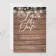 Esta rústica gravação da placa de data apresenta luzes de string e um script elegante salve a data acima de seus detalhes definidos em tipografia elegante em um fundo de painéis de madeira rústica. Projetado por Thisnotme©