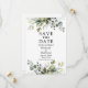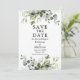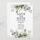 Verde Botânico Elegante moderno Salve a Data O Cartão inclui folhas de eucalipto, folhagem botânica verde, folhas azuis empoeiradas e outro belo verde botânico.