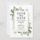 Verde Botânico Elegante moderno Salve a Data da Cópia A placa inclui folhas de eucalipto e folhagem botânica verde numa moldura dourada.