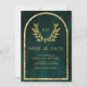 Reserve A Data Coroa de Louro Dourado Folhas Verde Esmeralda Casa