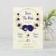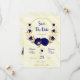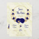 elegante romântico flores azuis reais e folhas de ouro na coroa dourada salvo o convite da data Os detalhes da brilha são simulados