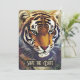 Uau amigos e família com um tigre moderno e criativo salvem o cartão de convite de data. A frente da placa apresenta um design de tigre com "Save the Date" (Salvar a data). Detalhes sobre o evento estão no verso juntamente com um código QR. O código QR pode ser usado para seu RSVP, site (entre outros). Cores terríveis. Design de tigre personalizado. Use a modelo para personalizar.