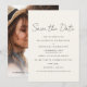 Chic Light me salve a data do anúncio do casamento com "Salvar a Data" em um roteiro moderno mínimo e salve os detalhes da data em uma simples tipografia. O verso mostra sua foto sobreposta com seus primeiros nomes e a data do casamento.