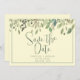 Moderno Salvar os anúncios de data apresentam a aquarela cor-de-água eucalipto deixa borda no plano de fundo do creme com blocos de texto verdes personalizáveis nas fontes modernas