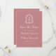 Este elegante casamento inspirado na vintage Save the Date design apresenta um par de iniciais de monograma branco em letra serif aberta acima e abaixo de uma linha divisória e rodeado por uma crista de acanthus de uma linha em fundo rosa empoeirado. A parte traseira da placa é um rosa poeirento sólido.