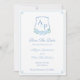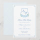 Save The Date Elegante Azul e Branco com um brasão de aquarela com hortênsias azuis.