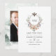 Convite de casamento em aquarela com uma crista caprichosa de tema florestal personalizável com as iniciais do casal.