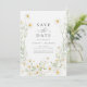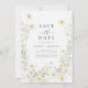 As margaridas brancas-escuras com centros amarelos criam uma exibição de flor silvestre boho neste minimalista, exceto a data design. A maneira perfeita de anunciar seu casamento para a família e amigos.