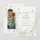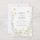 As margaridas brancas-escuras com centros amarelos criam uma exibição de flor silvestre boho neste minimalista, exceto a data design. A maneira perfeita de anunciar seu casamento para a família e amigos.