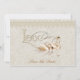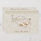 Convites sutis e elegantes em mestiço de marfim, borda de rendas e texto de amor de ornamentado com cisnes graciosas. O texto tem sotaque de diamante. Uma design de casamento "Salve a data". A parte traseira da placa tem cor damasco correspondente e as áreas de texto estão prontas para ser personalizada. Os envelopes estão incluídos. Este design está disponível em outras cores.