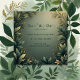 This unique design captures the aesthetic of a dark green elegant nature wedding. It offers a luxurious and modern feel with its emerald green and beige palette, creating a dramatic and moody atmosphere. The botanical focus is highlighted by a frame of leaves and foliage, while the invitation details use a handwritten script typography. This piece blends rustic and elegant elements.