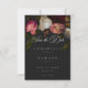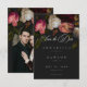 Make a bold statement with this dark moody floral romantic rose fine art wedding photo save the date card design. Featuring lush white, burgundy and pink blooms on a deep black background, it is perfect for a sophisticated evening or winter ceremony. This dramatic aesthetic offers a luxurious, high-end feel for your special day. Created by Simply Farmhouse Press.