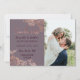 O elegante e moderno país e a moda de moda imprimiram o rosa dourado floral em um fundo de mauve roxo e tipografia de letra do script de pincel manuscrito, cartão de casamento Save-the-Date. Este design clássico e sofisticado é perfeito para o casal de competição de tendências e na moda. Personalize com sua própria mensagem na frente, assim como um monograma personalizado inicial no verso. Todas as impressão de fotos.